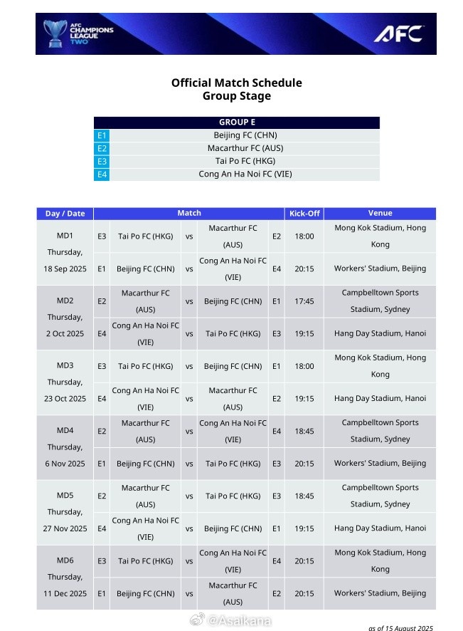 开云入口使用方法-亚足联工作失误误传亚冠二级联赛赛程错误版本 xiaoqiao 2025年09月12日 13:00 77 0 亚足联官网今日早些时候上传的亚冠二级联赛赛程更新是不正确的,北京国安的赛程实际并未有变化(更新仅为其他小组标黄部分内容),第一场仍为主场对河内公安的比赛,估计是亚足联工作失误误传了错误版本。赛程以中国足协8月25日在官网发布的版本为准。