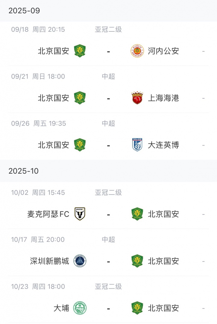 此前国安赛程: