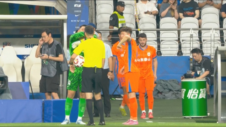 不解判罚!下半场开始前,王彤与王大雷仍向麦麦提江投诉此前手球